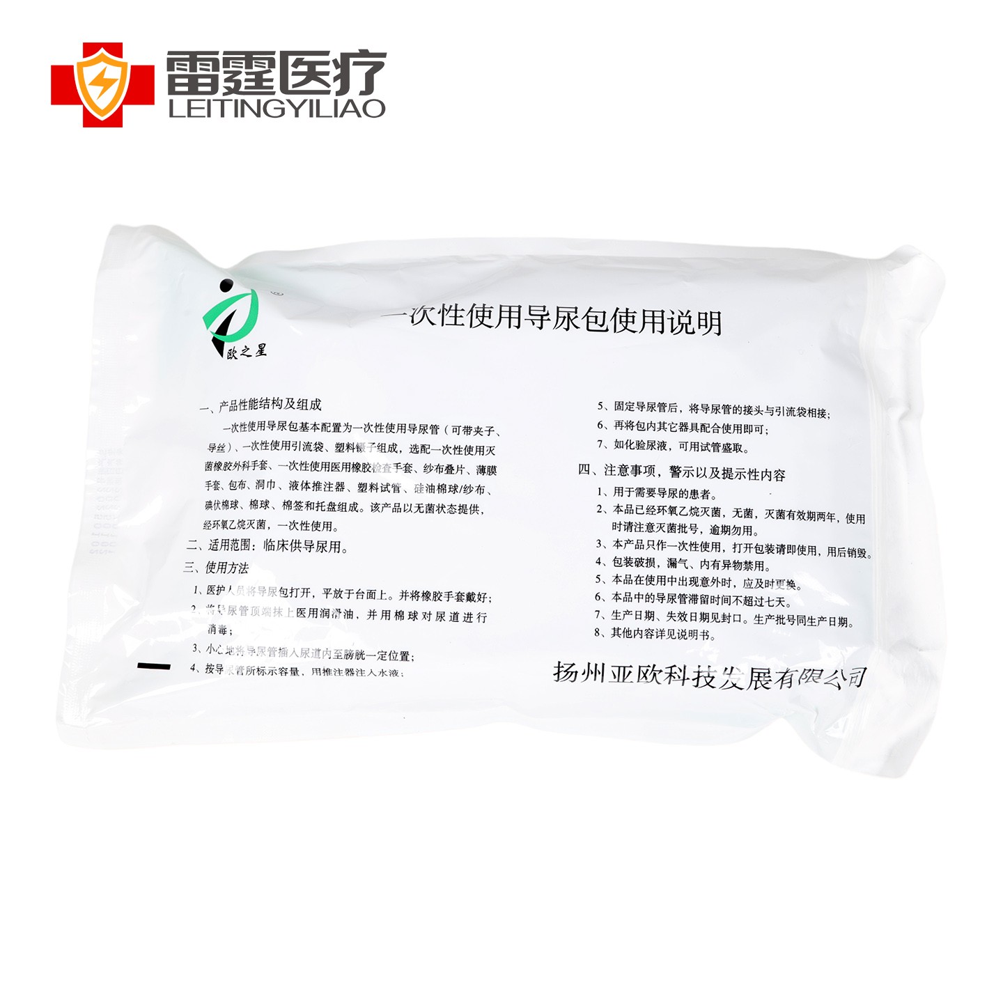 # 欧之星一次性使用导尿包 ## 产品概述 欧之星一次性使用导尿包,由扬州亚欧科技发展有限公司生产,中山雷霆医疗器械有限公司经销,为临床导尿操作提供专业、安全的解决方案 。 ## 产品优势 - **严格灭菌**:采用EO灭菌,灭菌彻底,单包独立灭菌包装,有效避免交叉感染,保障临床使用安全,符合医院感染管理规范 。 - **规格适配**:导尿管规格为16Fr,管径适配常用临床需求,材质柔软且有韧性,插入顺畅,减少对尿道黏膜损伤,提升患者舒适度 。 - **配置齐全**:导尿包内配备导尿操作所需相关组件,无需额外零散准备,简化操作流程,节省医护人员准备时间,提高导尿工作效率 。 ## 适用场景 适用于医院、诊所等医疗机构,针对尿潴留、术前术后排尿困难等需导尿情况,为医护人员提供便捷、安全的导尿工具,助力规范、高效完成导尿操作,守护患者泌尿系统护理安全 。 选择欧之星一次性使用导尿包,专业品质,安全护航,为临床导尿操作赋能 。